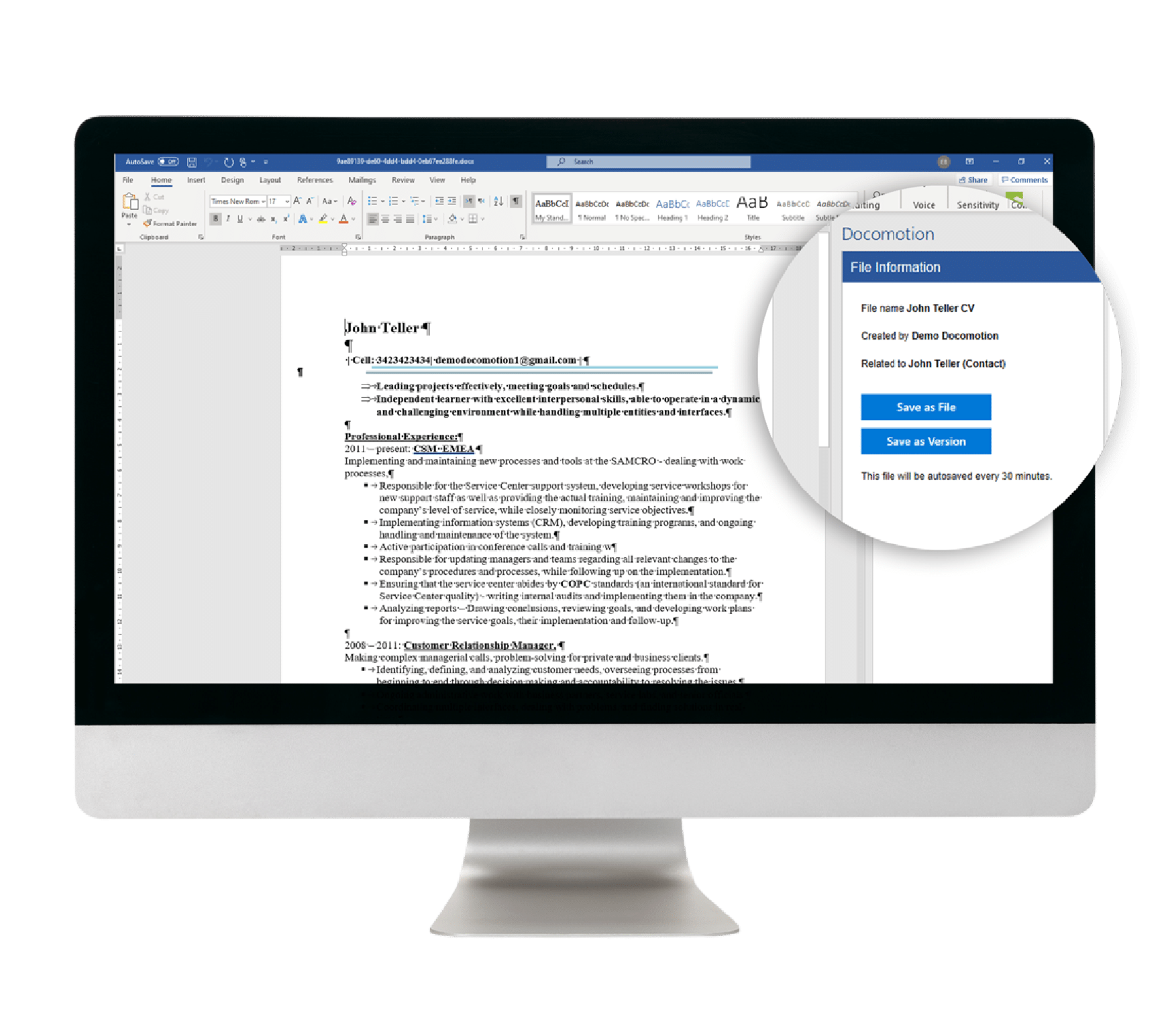 Our Doc2File add-on allows users to download a Word document, make changes, and save it automatically as Word or PDF under the same record on Salesforce.