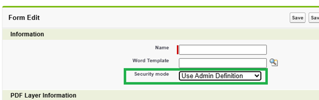 Location: The Security Mode field on the Form record.