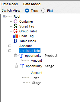 - Open Define Data Model, click the ‘Add Unrelated Object’ button. Click the Unrelated Object button in Available Fields.